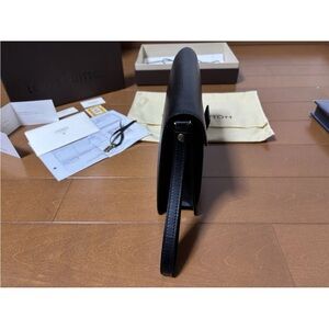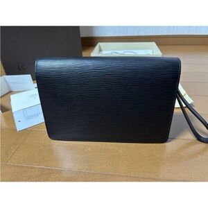 Louis Vuitton Black Leather Clutch with Gold Clasp