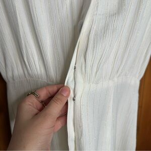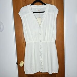 super cute & in great condition, still has its original tags attached. lightweight, comfortable, soft, stretchy, & breathable material throughout. v-neckline, metal button closure with faux fabric covered buttons down the front, metallic gold stripes, sleeveless, a-line style, & is mini length. great to wear casually, everyday, to school, work, running errands, shopping, baby, shower, traveling, on vacation, cruise, beach, resort, mexico, cancun, tulum, cabo, florida, pool, lake, as a swimsuit coverup, or whatever else you could want!