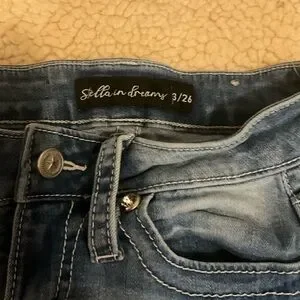 silla in dreams jeans | size 3/26 | light wash denim | skinny fit | embroidered dreamcatcher back pockets with feather details | silver stud accents | white contrast stitching | classic five pocket style | pet and smoke free home