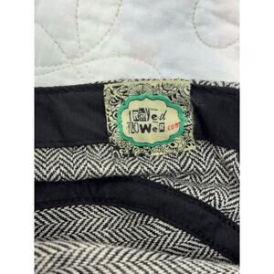 Women’s black and cream with multiple material flower and Bling hat with hook/loop back.