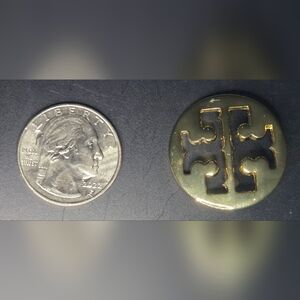 This gold-tone logo replacement button/emblem is perfect for repairing your favorite Tory Burch items.