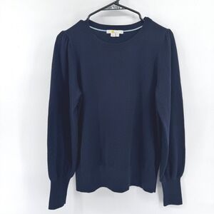 BODEN Navy Puff Sleeve Crewneck Sweater Women UK 12 US 8 Wool Cotton Blend