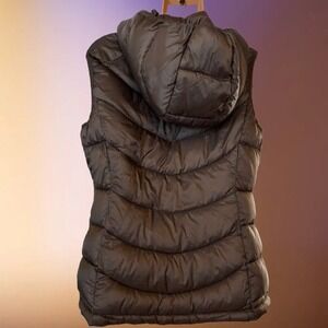 NEW vest, Taupe in color size S. Features zipper front with side zipper pockets and removable hood with bag.