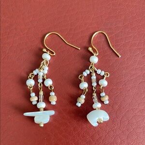 These elegant dangle earrings feature a stunning combination of gold and white tones, perfect for adding a touch of sophistication to any outfit. Earrings are 1.5” long