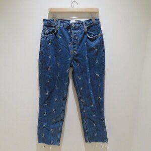 REFORMATION Dice Embroidery High Rise Straight Jeans Vegas Cropped Size 30