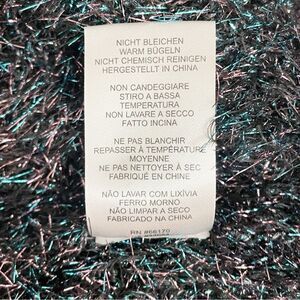 Holiday festive, disco-fab Anthropologie Olivia cardigan. Designed in a soft, fuzzy black base with metallic blue and pink tinsel threading, it catches the light beautifully while staying cozy and comfortable.