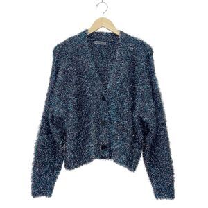 Anthropologie Olivia Metallic Tinsel Cardigan Sweater Medium Blue Pink Shimmer