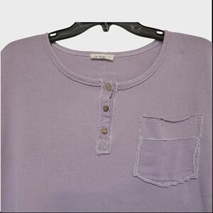 This beautiful lavender Blouse is from In Loom. It's an oversized small and the pit to pit measurement is 44" around. It is short sleeve with a front pocket and raw seams and accents throughout. It's made from 100% cotton.