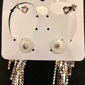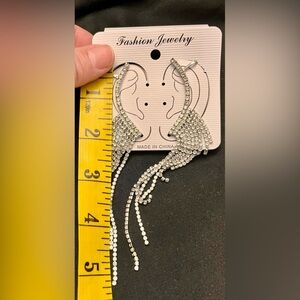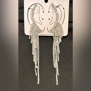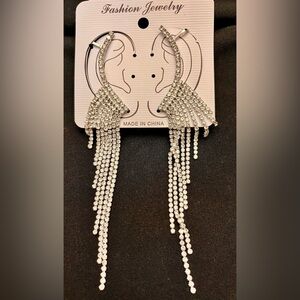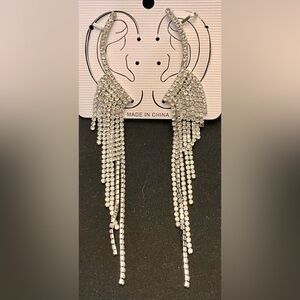 Silver Sparkling Crystal Rhinestone Runway Model Princess Dangle Earrings Cuffs