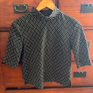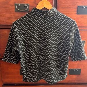 Zara Trafaluc Black White Geometric Mock Neck Top Fall Winter Collection Size M