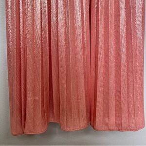 Iconic Retrofête Mallory Gown in the coveted Earl Rose shade, size Small. This strapless metallic pink dress features a bandeau-style bodice with ruching, a front cutout, pleated shimmer fabric, and a daring high slit. A true statement dress that embodies Retrofête’s glamorous, red carpet-ready aesthetic.