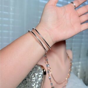 This elegant silver bracelet adds a touch of sophistication to any outfit. Perfect for any occasion.
