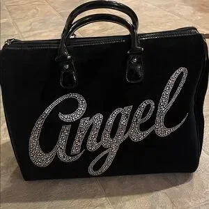 Victoria’s Secret “Angel” black velvet duffle bag with rhinestone detailing