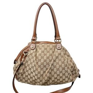 Gucci Sukey Logo Monogram Canvas Leather Trim Boston Bag with Shoulder Strap