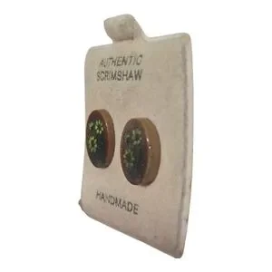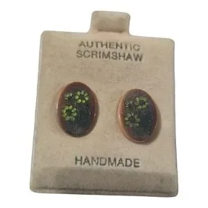 Handmade earrings with green floral design. Oval shape. Unique and artistic.