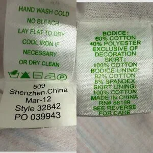 Care: Hand wash cold, lay flat to dry, cool iron if needed, or dry clean