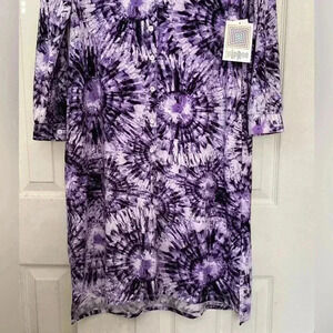 NWT LULAROE Midi Shirt Dress Purple Tie Dye Starburst Midi Button Up V-Neck Shift MIDI DRESS Size Medium