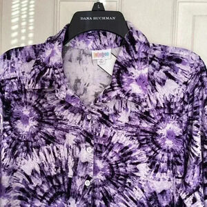 LULAROE Midi Shirt Dress Purple Tie Dye Starburst Midi Button Up V-Neck Shift M