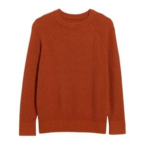 Keywords: Old Navy, waffle knit, crewneck, raglan sleeve, rust orange, pullover, textured knit, cozy, casual, fall fashion, winter wear, basic
