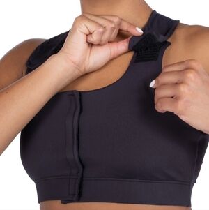 Heart and Core Serena Post-Surgical Bra in solid black size Super Queen (band 56"-60"). Our Serena Post-Surgical Bra with pockets is uniquely designed for post-surgery recovery, offering a wide variety of sizes and features like adjustable straps and front closure for a custom fit, a non-rolling band and soft, quick-drying, supportive fabric. Pockets make it ideal as a reconstructive surgery or mastectomy bra. Internal pockets* for breast insert/form, ice or puffs. Soft but strong medical-grade Velcro® for adjustability and security without a scratchy feel. Bra is in like new condition with little to no signs of wear. from smoke free and pet free home