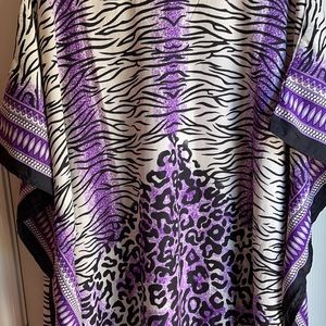 NWT JESSICA TAYLOR embellished bodice purple and black print caftan. One size. Caftans are the new work at home attire!! Fabric is 100% polyester. H