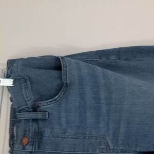 11 1/4" high rise, sits on hips with a relaxed fit, 12 3/4" straight leg opening, 27" inseam.