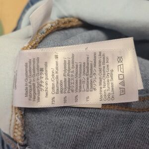 73% cotton/16% poly/10% rayon/1% elastane denim.