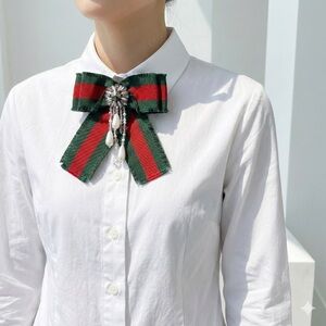 Gucci, Alessandro Michele, Web Stripe, Bow Brooch, Pearl Drop, Crystal Jewelry, Runway, Maximalist, Designer Accessory, Holiday, Statement Piece