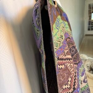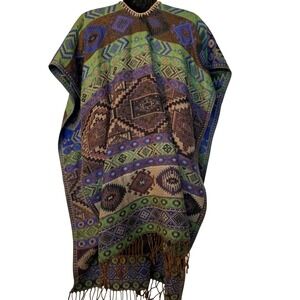 Southwestern Festival Boho Purple Green Open Poncho Shawl Fringe Trim One Size