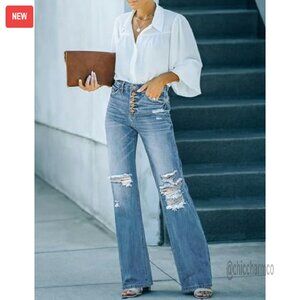 Brand new, never worn, and in flawless condition — these high-waisted flare jeans deliver a bold, retro-inspired look perfect for making a statement. The distressed details and flattering silhouette offer a comfortable yet edgy vibe for any occasion.