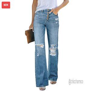 High Waisted Ripped Flare Jeans Distressed Bell Bottom Wide Leg Pants