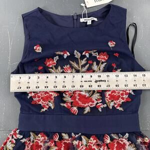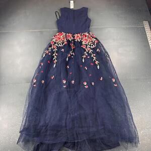 Minuet Dress Women Small Navy Blue Floral Embroidered Prom Formal ALine Maxi NWT