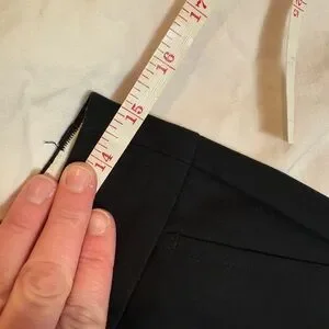 Size 4 navy blue cotton blend Banana Republic pants. When I used to actually work in an office, they were insanely comfortable. Good condition--some wear on one leg, as pictured.