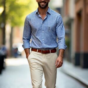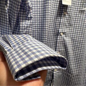 Michael Kors men's regular-fit Airsoft non-iron performance dress shirt with a blue and white check pattern. The shirt has long sleeves, a button-down collar, and a chest pocket. It's made from a stretch fabric with an airsoft finish for comfort and ease of wear. The "Airsoft" designation indicates that the shirt is designed to be wrinkle-resistant and have moisture-wicking properties. This type of shirt is suitable for both formal and business settings