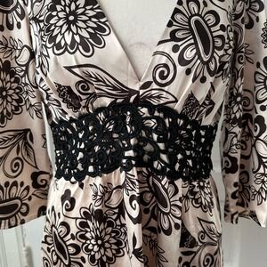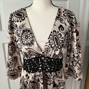 Metrocity Floral Print Women's Babydoll Top Satin Crochet Y2K Fairy Boho Gypsy M