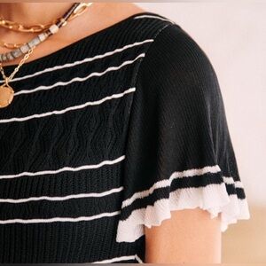 NWT Sezane Brunella Knit Mini Dress Black White Stripe | size XS