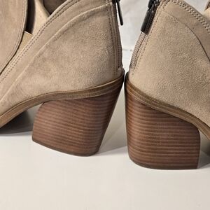 Vince Camuto Gradina Stacked Heel Ankle Bootie Size 8 Beige Suede Pointed Toe