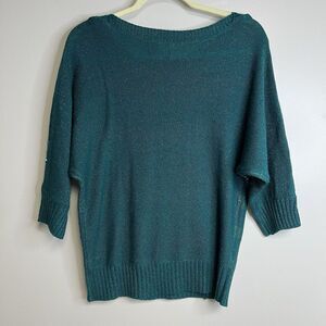 Womens New Directions Green Pullover Sweater Shiny Stripes Long Sleeve Small