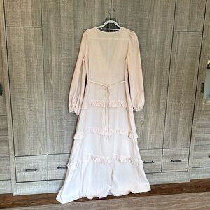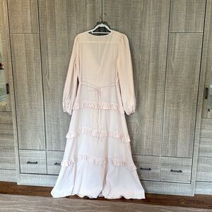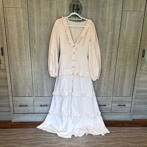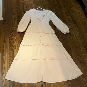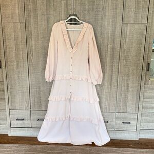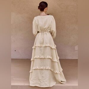 Commense Cotton & Linen Semi-Sheer Ruffle Trim Long Dress