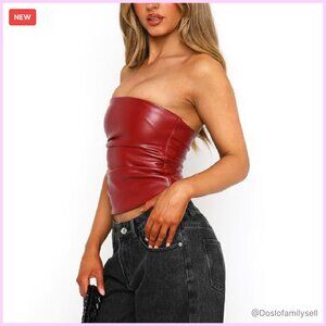 Faux Leather Strapless Tube Top Ruched Detail Sexy Chic Y2K Party Wear