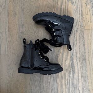 H&M Baby Patent Black Boots 4.5 | Velvet Lace Zip Warm Lined Combat Booties