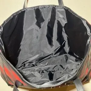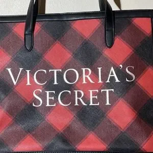 Victoria's Secret Open Top Weekender Holiday Black Red Plaid Women Tote Bag NWOT— large open interior – no pockets – no closure. Lightweight V.S on the front is in silver metallic.