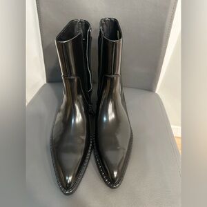 Massimo Dutti Glossy Black Leather Boots