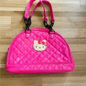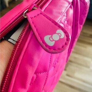 Bright and fun Hello Kitty shoulder bag. Features quilted design with iconic Hello Kitty face. Perfect for everyday use. Hot pink and so cute! Inside is flawless. Minor signs of use shown in pic around the side of attachment in pic 20. Great gift!
