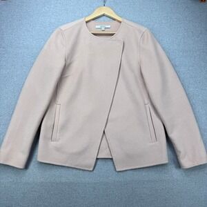 Badgley Mischka Pink Wool Collarless Asymmetrical Snap Jacket Size 8 *TINY FLAW