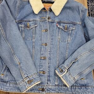 EUC Levis Women's Blue Denim Trucket Jacket with Sherpa Collar Size 1X