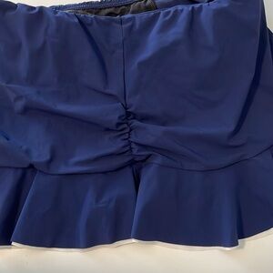 Profile by Gottex navy swim skirt sz 12. Like new. Navy skirt with attached bikini and white trim. Shirred on the sides. Elastic waist. See my other listing for a matching top.