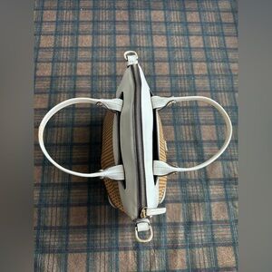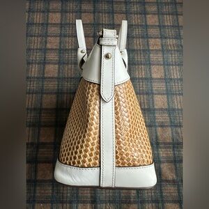 Dooney & Bourke Beacon Woven Dome Satchel – Brown & White Leather – EUC