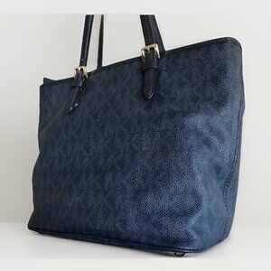 Michael Kors Jet set signature large snap pocket tote Authentic Blue monogram