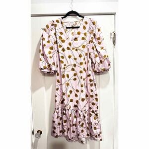 A New Day Pink Purple Floral Puff Sleeve Ruffle Midi Dress Tiered Spring Easter